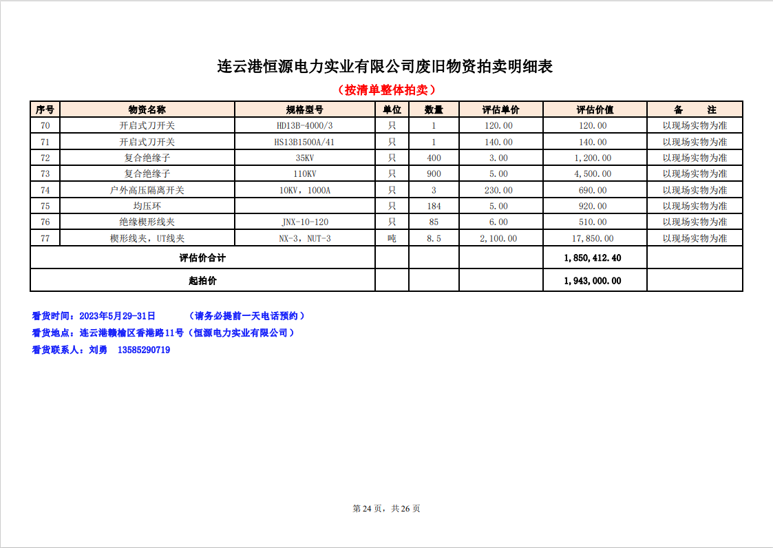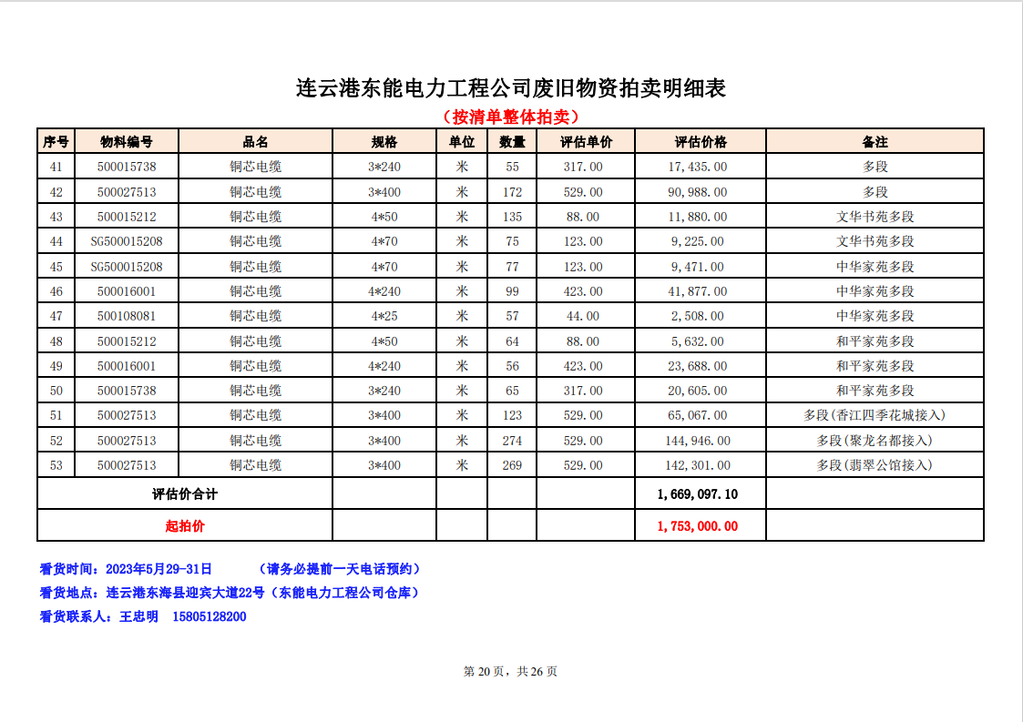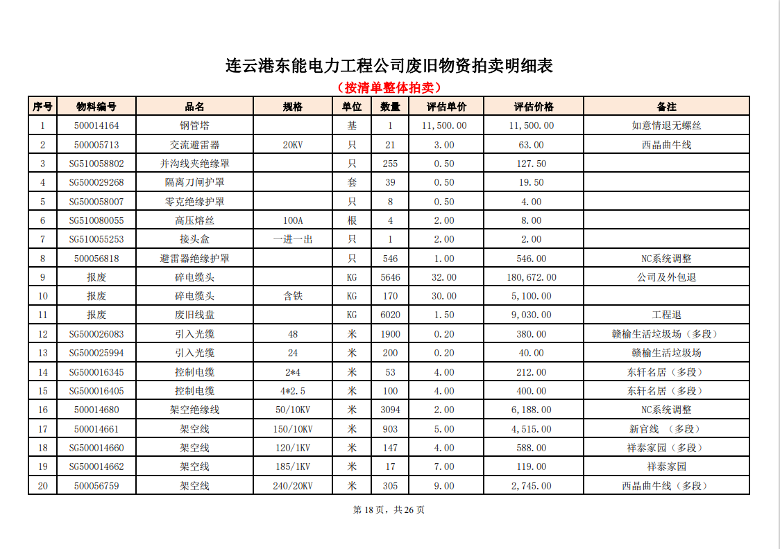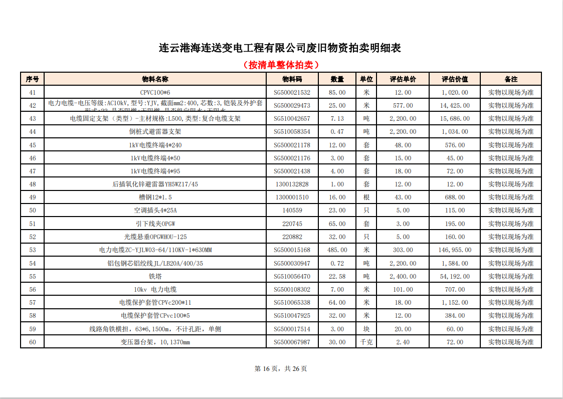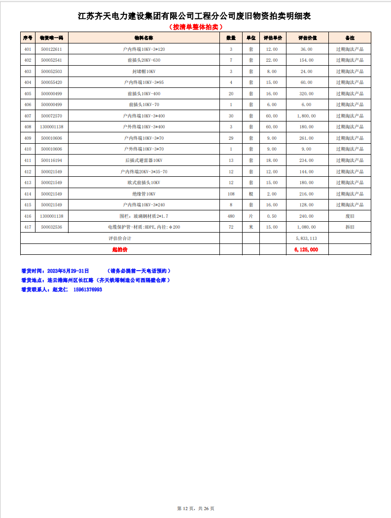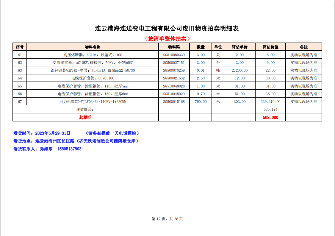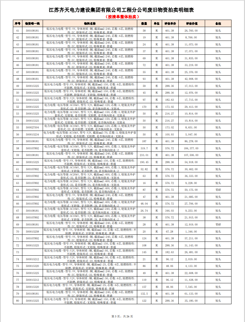關(guān)注微信公眾號定于2023年6月1日上午9:30時(網(wǎng)絡(luò)延時除外)在中拍平臺公開拍賣廢舊電力物資一批。主要包含:銅芯電纜、鋁芯電纜、鋼芯鋁絞線、廢舊鋼材、變壓器、電力設(shè)備、辦公設(shè)備、雜項物資、蓄電池等。