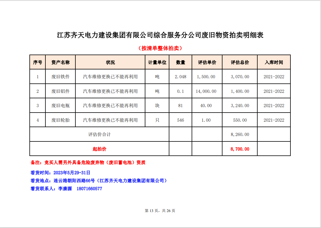 3、競拍蓄電池的競買人需另外具備危險廢棄物(廢舊蓄電池)資質(zhì)。