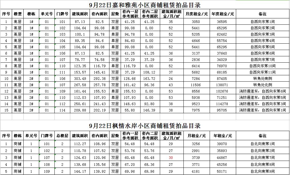 關(guān)注微信公眾號我公司受委托,定于2017年9月22日10時在本公司拍賣廳對以下小區(qū)門面房進行公開拍租: