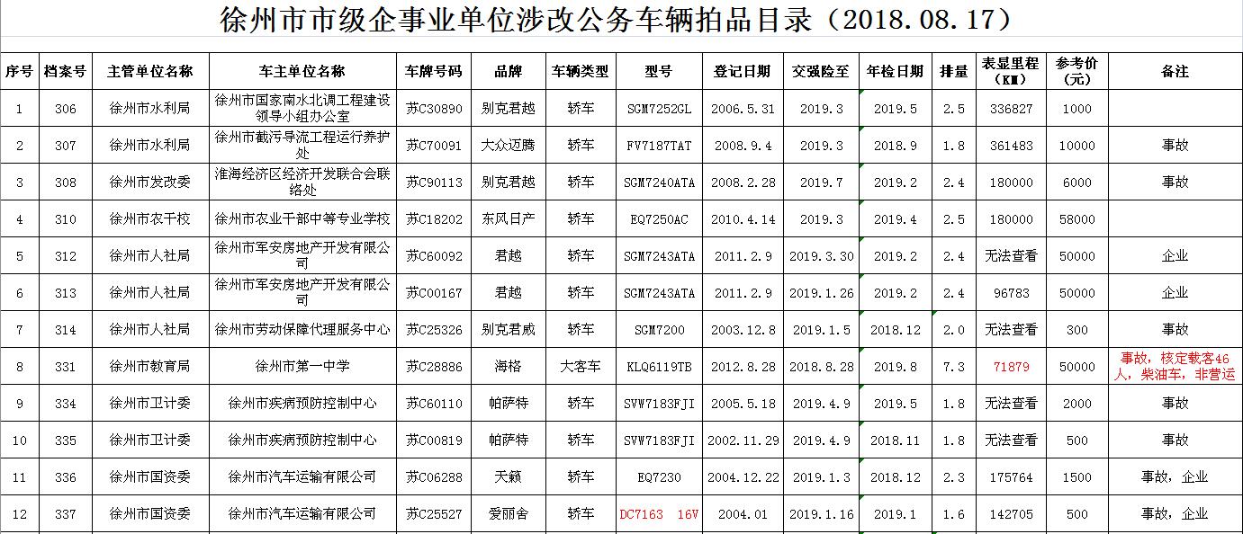 一、拍賣(mài)標(biāo)的:徐州市企事業(yè)單位改革公務(wù)車輛(詳見(jiàn)每期拍品目錄)。