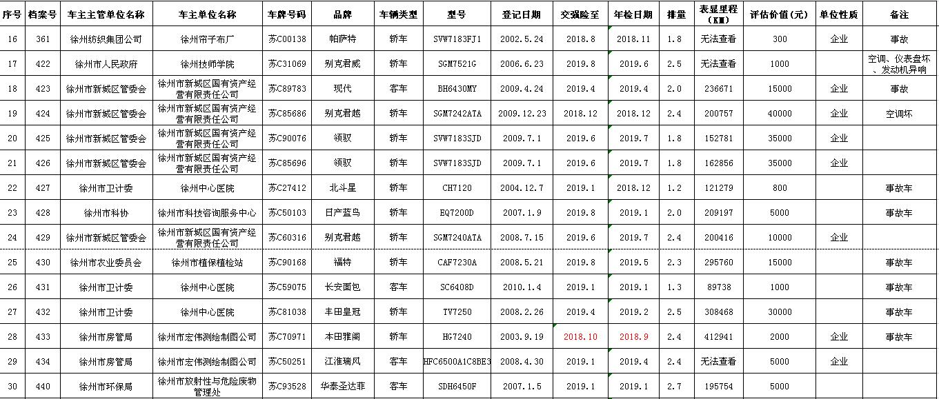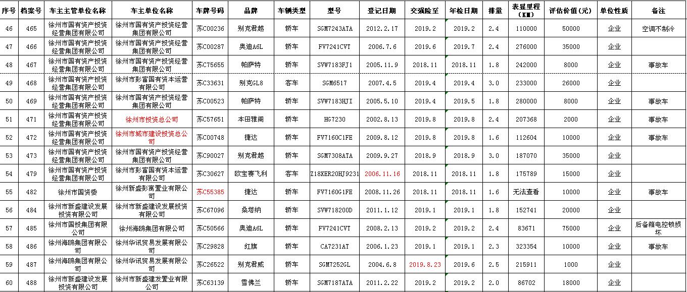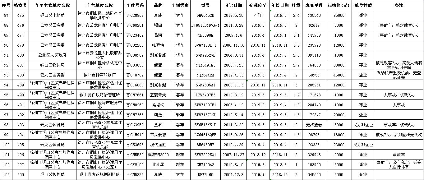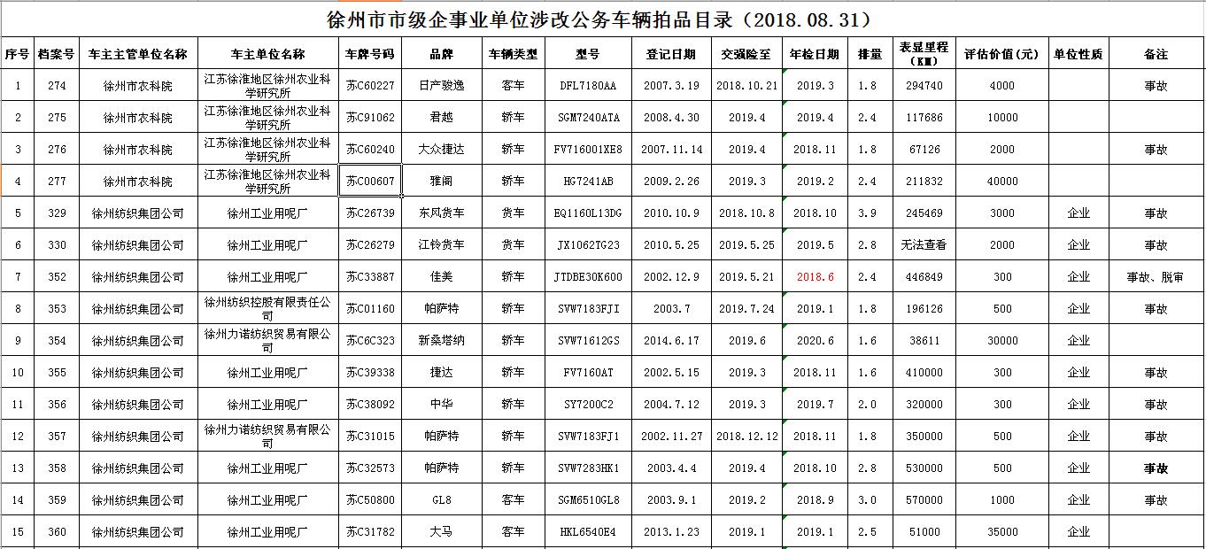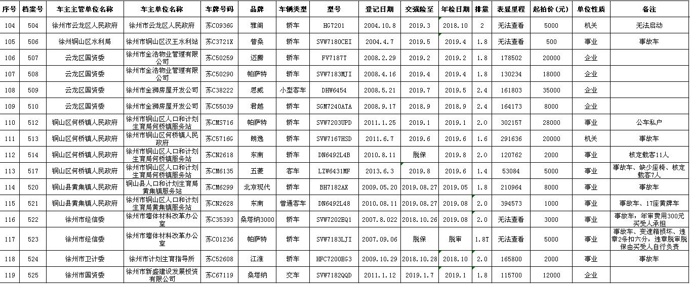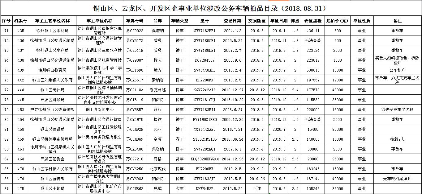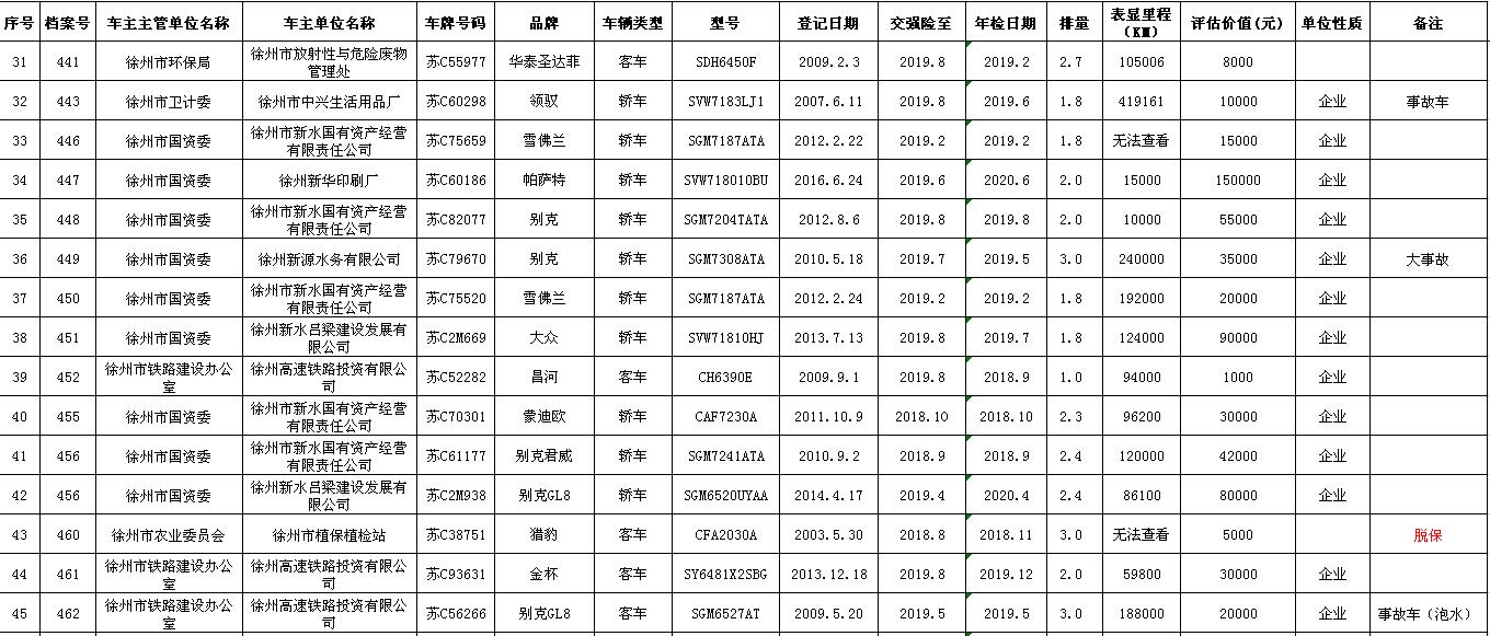 一、拍賣標的:徐州市市級及區(qū)級企事業(yè)單位改革公務車輛共約114輛(詳見拍品目錄)。