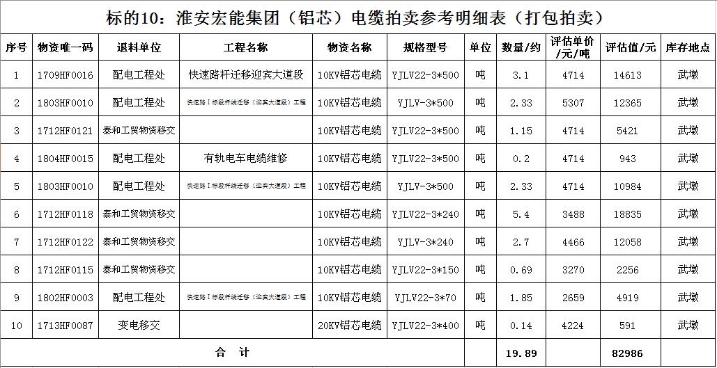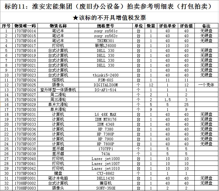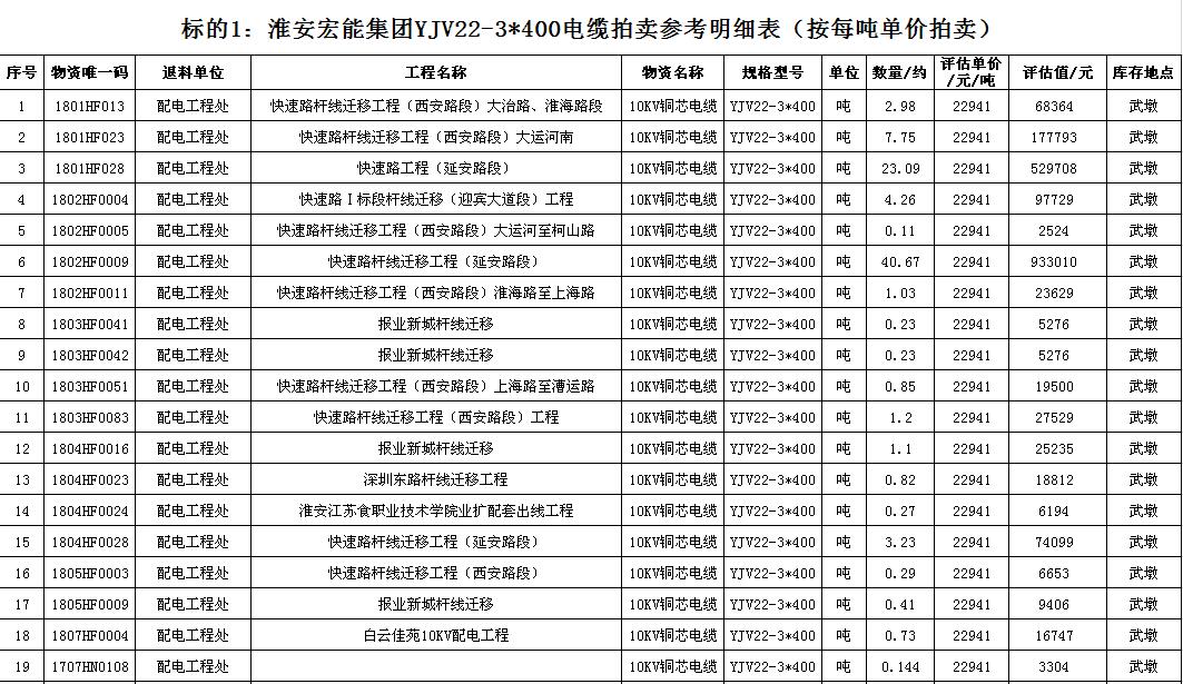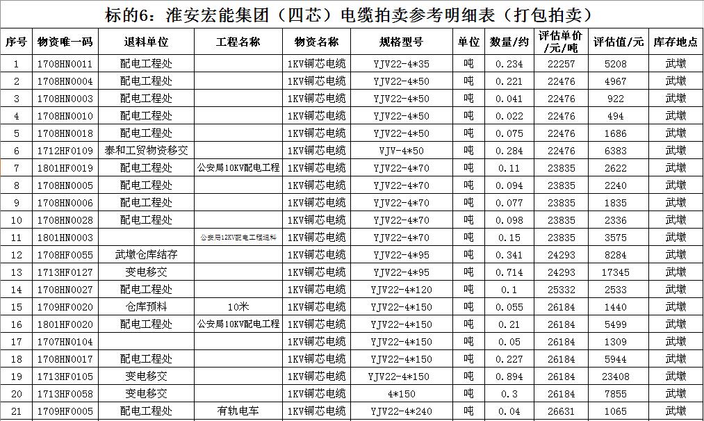 關(guān)注微信公眾號受淮安宏能集團(tuán)有限公司委托,我公司將通過中國拍賣行業(yè)協(xié)會網(wǎng)絡(luò)拍賣平臺以網(wǎng)絡(luò)競價(jià)的方式公開拍賣廢舊物資一批,主要包括:各型電纜,計(jì)算機(jī)、打印機(jī)等辦公用品(詳見拍品目錄)。