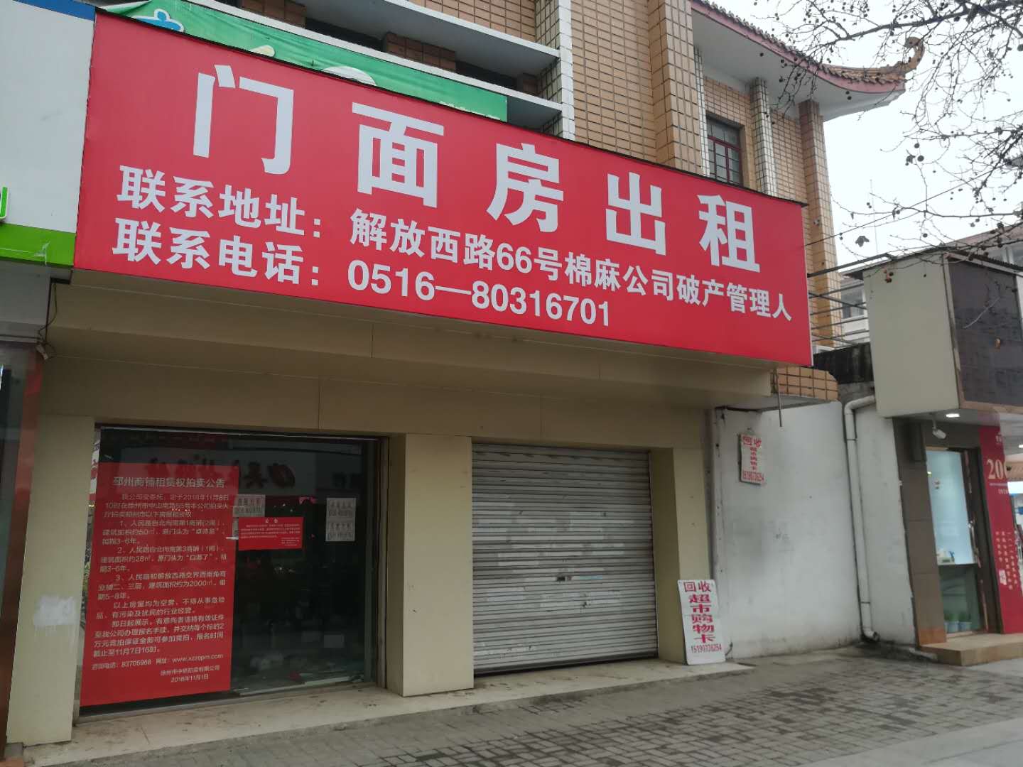 關注微信公眾號我公司受委托,定于2019年1月23日10時在徐州市中山南路55號本公司拍賣大廳拍賣以下位于邳州市區(qū)商鋪租賃權: