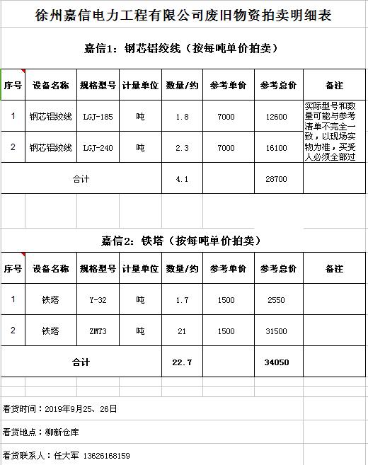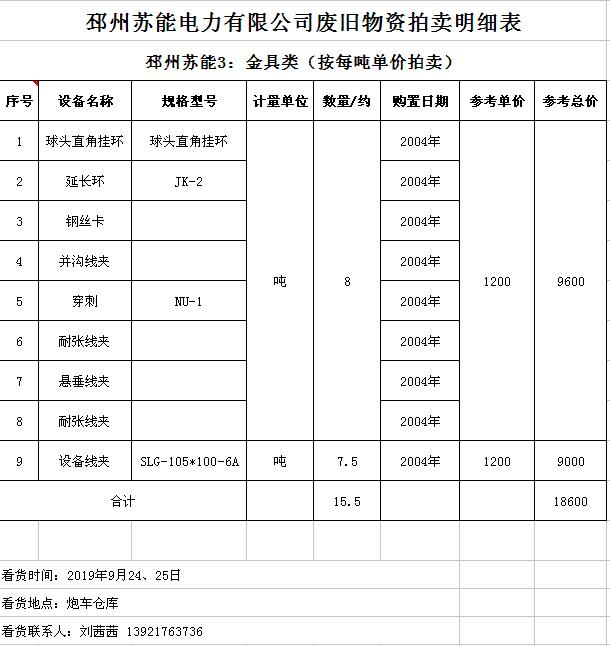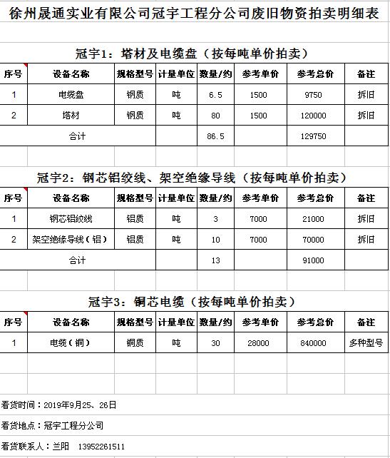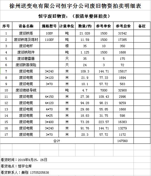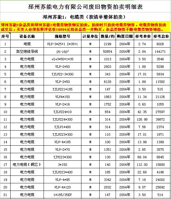 關(guān)注微信公眾號(hào)受委托,我公司將通過中國(guó)拍賣行業(yè)協(xié)會(huì)網(wǎng)絡(luò)拍賣平臺(tái)以網(wǎng)絡(luò)競(jìng)價(jià)的方式公開拍賣廢舊電力物資一批,主要包括:電纜、導(dǎo)線、廢舊鋼材、鋼芯鋁絞線、金具、雜品、機(jī)具、空調(diào)、辦公設(shè)備等。