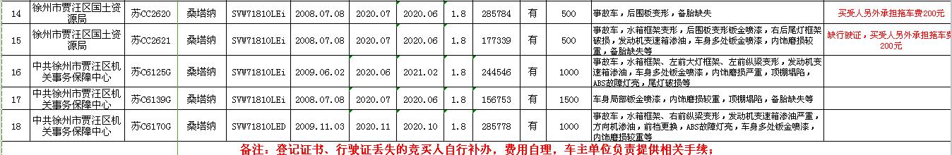 關注微信公眾號受委托,我公司定于2020年5月27日13:00時在徐州市銀地二手車交易市場四樓東南拍賣大廳通過現(xiàn)場和汽車街網(wǎng)絡拍賣平臺同步進行的方式公開拍賣以下公務車輛: