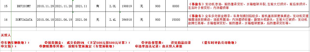 5月22日、24日在徐州銀地二手車交易市場(chǎng)展示。有意競(jìng)買者請(qǐng)持有效證件到我公司辦理報(bào)名手續(xù),并交納每輛車1萬元保證金即可參拍,報(bào)名截止至5月24日16時(shí)。