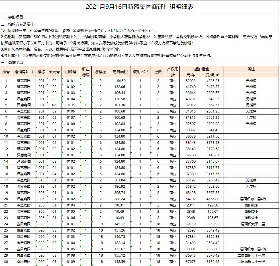 關(guān)注微信公眾號我公司受委托,定于2021年9月16日9:30時在徐州市中山南路55號本公司拍賣廳公開拍租以下商鋪:澤惠嘉園23間、宜居嘉園21間、和風(fēng)雅致7間。面積分別約為數(shù)十至三百余平米不等,租期均為三年。